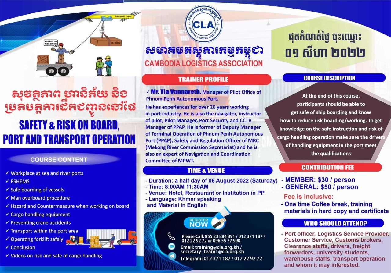 At the end of this course, participants should be able to get safe of ship boarding and know how to reduce risk boarding/ working. To get knowledge the safe instruction and risk of cargo handling operation make sure the drives of handling equipment in the port meet the qualifications.